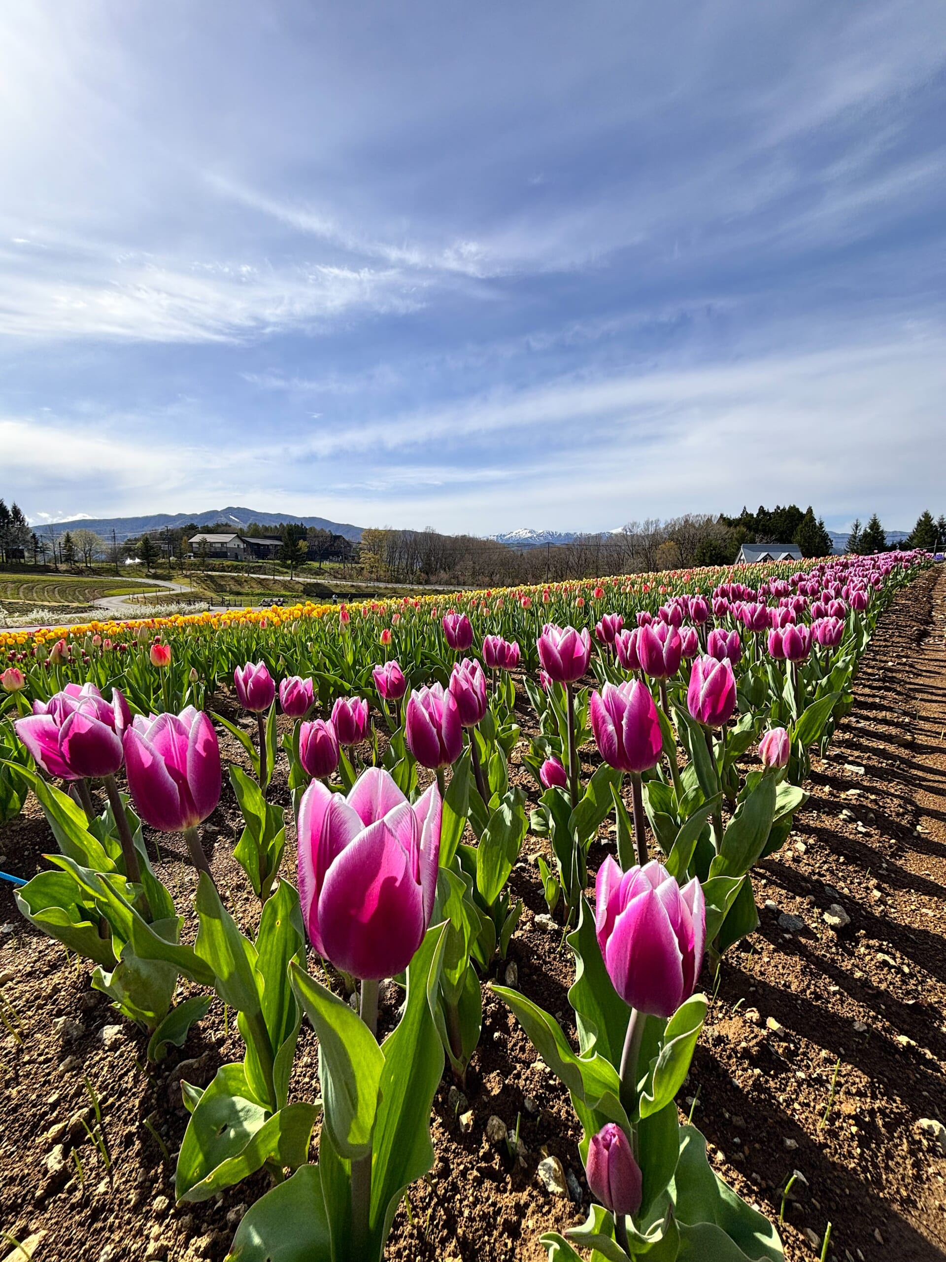 昨年秋に20万球31種類を植え、今年もたくさんの数が見事に開花。赤やピンクを中心にたくさんのチューリップがひるがの高原一面を彩る風景は一度見る価値ありです。